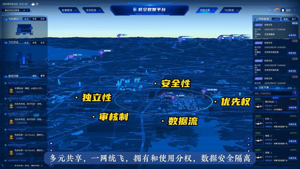 人工巡查不仅效率低下,偏远地带、夜间时段更是监管盲区,汛期巡堤、秸秆焚烧监测等高频任务常常让基层工作人员分身乏术。如今,新空安低空数智平台以“一网统飞”为核心,从“能飞、易飞、飞得起”入手,重构县域低空日常巡检模式,让低空巡检成为基层治理的“空中利器”。