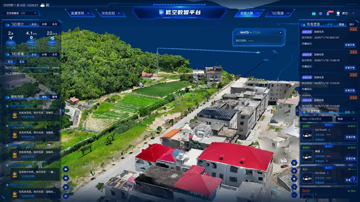 从“脚跑眼观”到“空中巡查”,新空安低空数智平台让县域日常巡检告别低效困境。这不仅是巡检方式的变革,更是基层治理效能的全面升级。未来,随着平台功能持续优化,县域日常巡检将更智能、更高效,为城乡精细化管理筑牢“空中防线”。