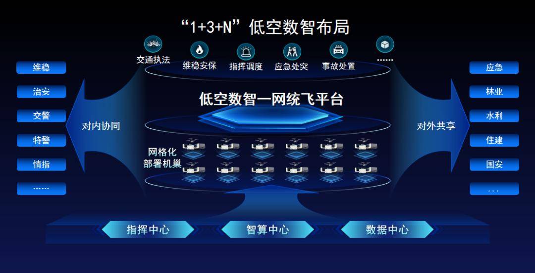 “一网统飞”落地的核心,是构建兼容共享、安全高效的技术底座。新空安低空数智平台以“智能、共享、安全”为核心定位,创新打造“一个平台、三个中心、多个低空场景应用”的“1+3+N”低空数智架构,通过资源集约与精准适配,彻底打破了传统低空作业“设备孤立、数据割裂、场景脱节”的困境。