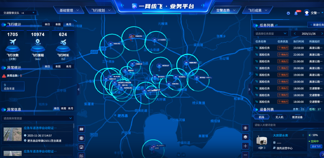 2025年10月,合肥市公安局交管支队与国先中心(合肥)联手打造“无人机+绕城高速管理”国家级超级示范场景,推动低空经济与城市交通治理的深度融合,共同研发了全国首个城市级“一网统飞”智能交通板块。
