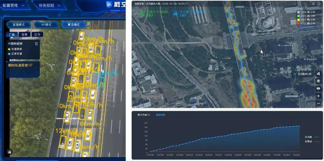 平台搭载针对交通场景专属优化的智能识别算法,无需人工干预即可精准捕捉违停占道、交通事故异常、超速低速等各类常见场景,成功推动交通管理从“地面巡逻”到“空地协同”的空间延伸,从“被动处置”到“主动防控”的能力进阶,让各类交通隐患的处置抢在萌芽阶段,最大限度降低事故发生率和影响范围。