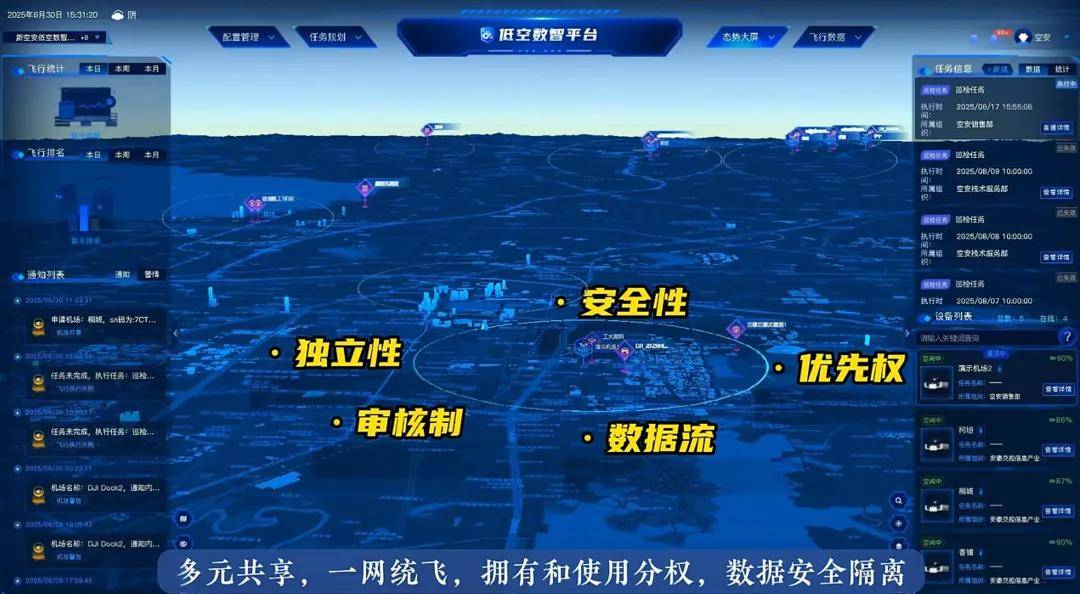 践行社会责任,以数智之力筑牢公共安全屏障。合肥“空中交警”的成功实践,只是新空安低空数智平台赋能社会治理的一个生动缩影。秉持“低空数智、服务百业”的企业愿景,新空安低空数智平台从未止步于单一场景的突破 —— 而是以低空为创新赛道,用数智技术打破跨部门信息壁垒,实现全域低空资源的智能调度与高效配置,让技术红利持续释放到城市运行、公共安全、生态保护等关键领域,为社会发展注入鲜活动能。