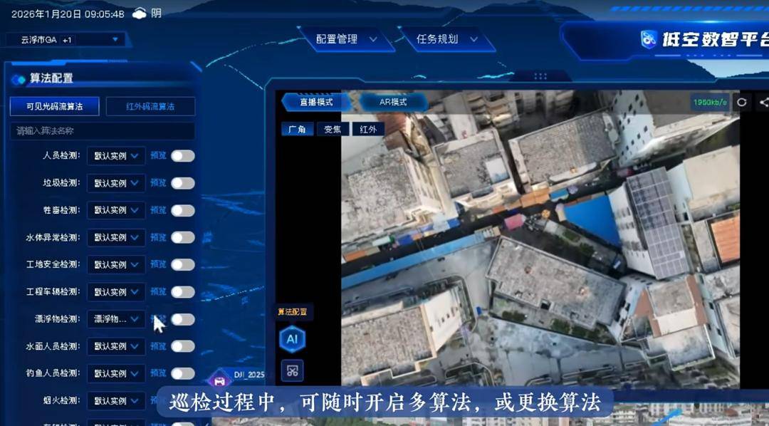 在低空巡检场景中,效率与精准度是核心诉求,而传统巡检单算法运行、目标识别单一、区域检测灵活度不足的痛点,长期制约着作业效能。新空安低空数智平台带来的“低空算法多开 + 多态大模型”效率价值双突破,直击行业痛点,通过实时多开算法、多目标前端融合展示、全域分区精准检测搭配多标签并行检测的创新方案,让低空巡检的智能化与高效性实现质的飞跃!