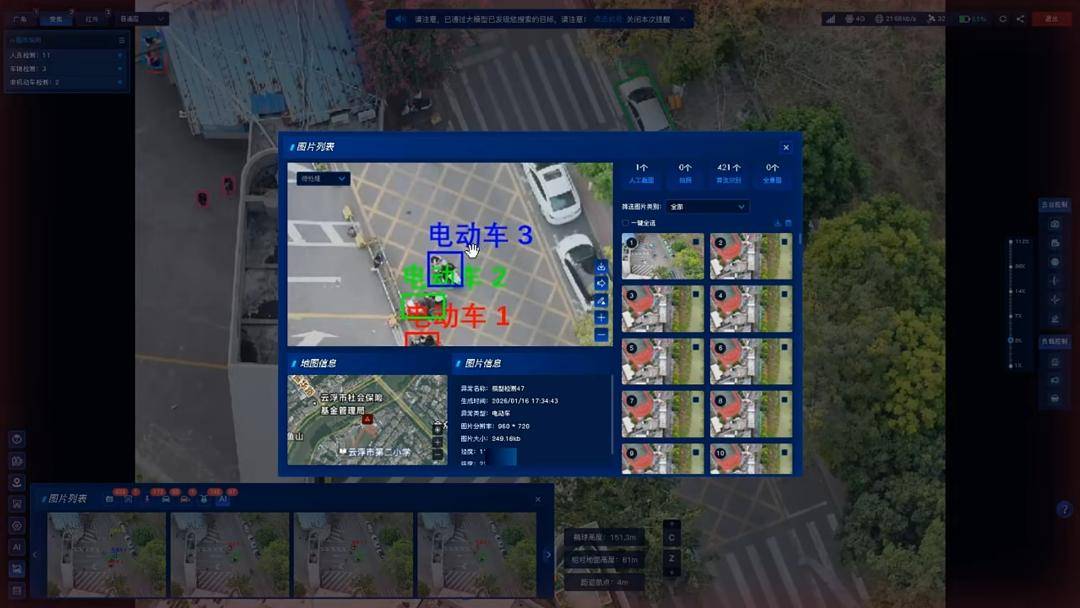 智能告警+闭环处置:异常情况触发声光、弹窗告警,自动截图记录目标、位置、时间等信息,支持手动标注后直接下发处置指令,形成“发现 - 记录 - 处置”完整闭环。