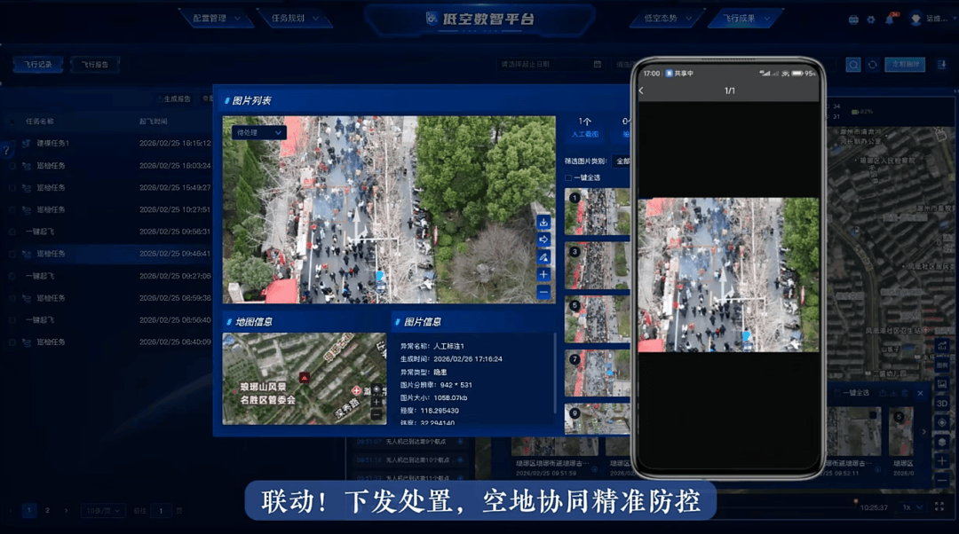 琅琊山庙会创新采用“新空安+大疆机场3+地面保障”的空地协同立体安保体系。无人机作为“空中天眼”实现全时全域巡航,与地面警力联动,形成“空中预警、地面处置”的闭环模式,有效提升了安保智能化水平和应急处置效率,是科技赋能传统活动安保的成功实践。