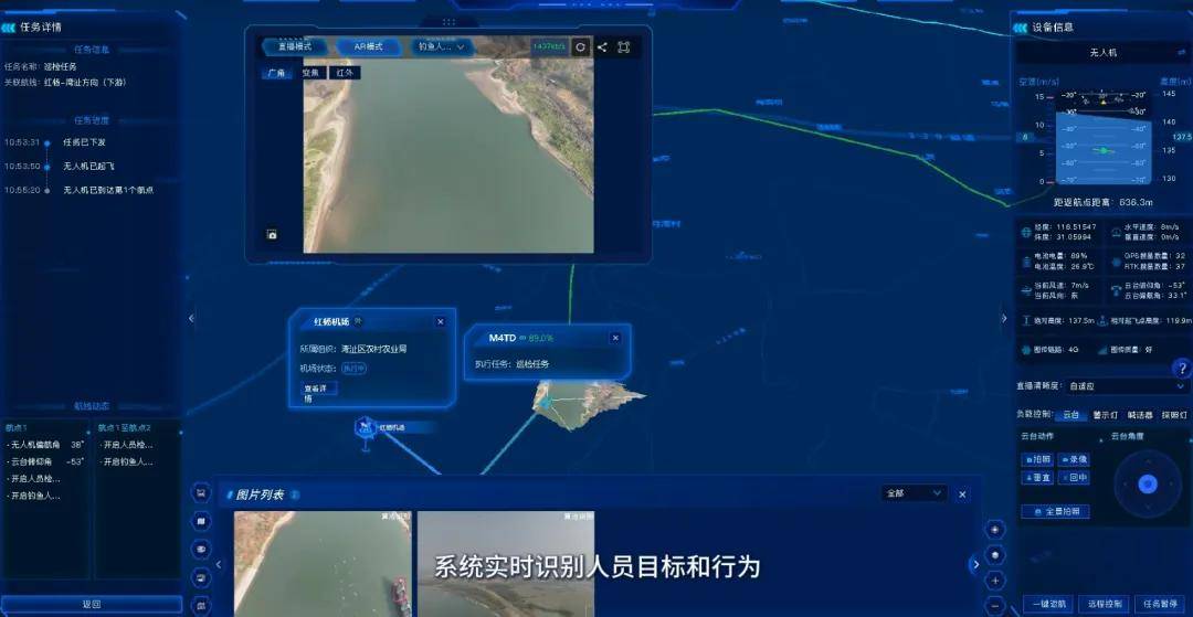 新空安低空数智平台充分发挥无人机广域覆盖、灵活巡航的特性,搭配广角、变焦多镜头适配能力,依托红外热成像识别,即便在夜间也能实现全域精准监测,彻底摆脱了人工主观判断的局限。针对水域治理的全场景需求,平台的自研核心算法实现了定制化开发,能对水域及周边各类行为、现象进行智能识别、实时统计与自动告警,更支持截图、录像、声音、弹窗等多形式告警,搭配远程喊话功能,实现从“发现问题”到“现场处置”的高效联动,让水域监管更精准、更及时。